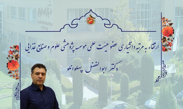 ضمن تبریک صمیمانه، این موفقیت علمی به ایشان و خانواده بزرگ موسسه پژوهشی علوم و صنایع غذایی، توفیق روزافزون ایشان را در مسیر اعتلای علم و پژوهش از درگاه خداوند متعال خواستاریم.